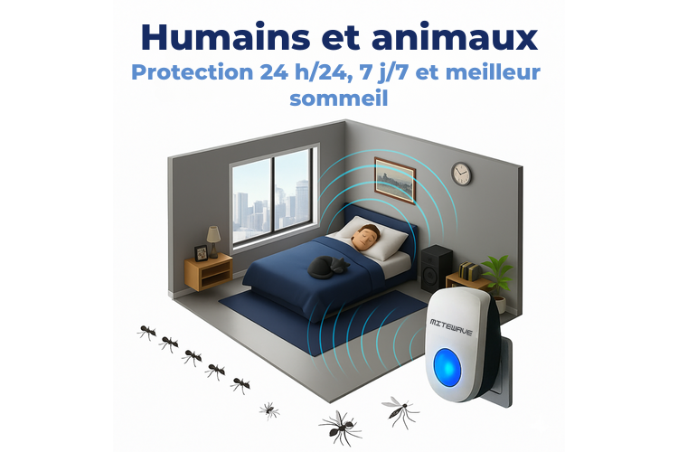 Oui. MiteWave élimine non seulement les acariens et les insectes existants, mais empêche également toute réinfestation grâce à des ondes ultrasoniques et électromagnétiques continues. Il protège votre maison contre les acariens, les rats, les souris, les araignées, les fourmis, les mites, les lépismes et bien d'autres nuisibles, 24 heures sur 24, 7 jours sur 7.